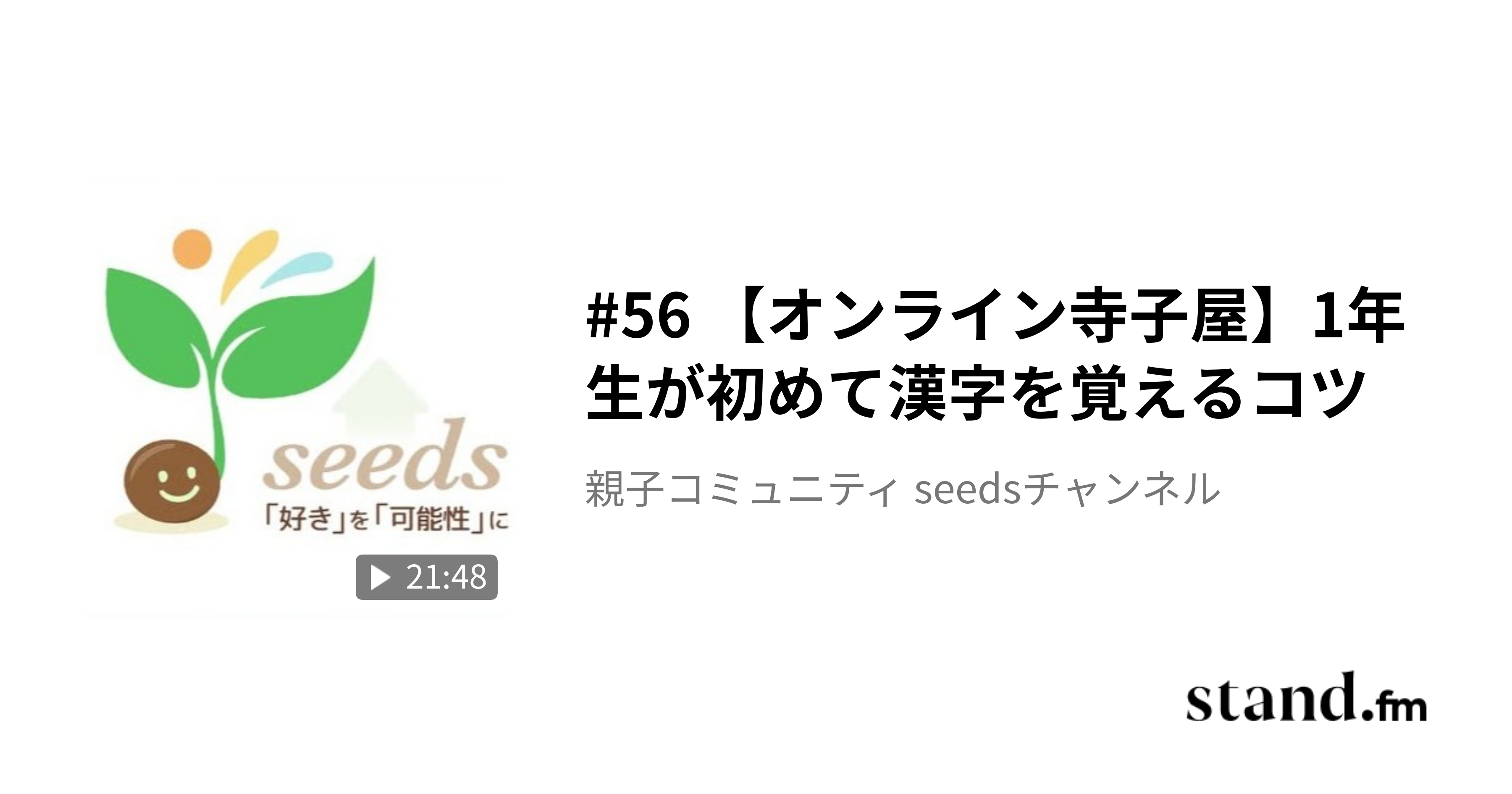 #56 【オンライン寺子屋】1年生が初めて漢字を覚えるコツ - 親子コミュニティ seedsチャンネル | stand.fm 1年生が初めて覚える『漢字』 ひらがな・カタカナの後に 最初は簡単な象形文字からスタートしますが 読み仮名がたくさんあったり 書き順が決まっていたり とめ・はね・はら...